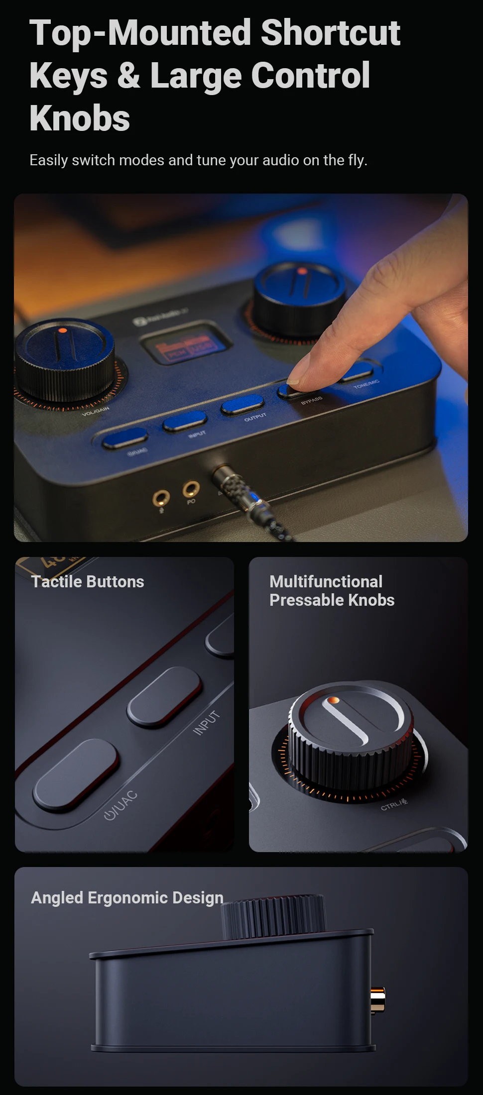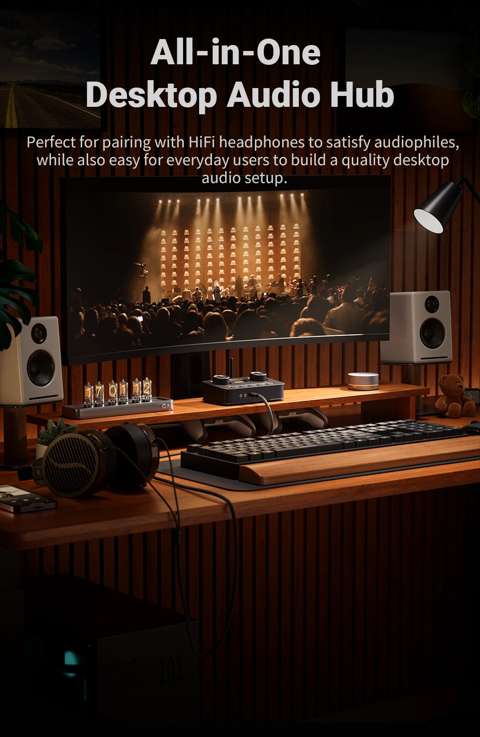 [ Powerful Headphone Amplification ] – Drives a wide range of headphones up to 300Ω, delivering clear, powerful, and distortion-free audio for immersive music and gaming experiences.