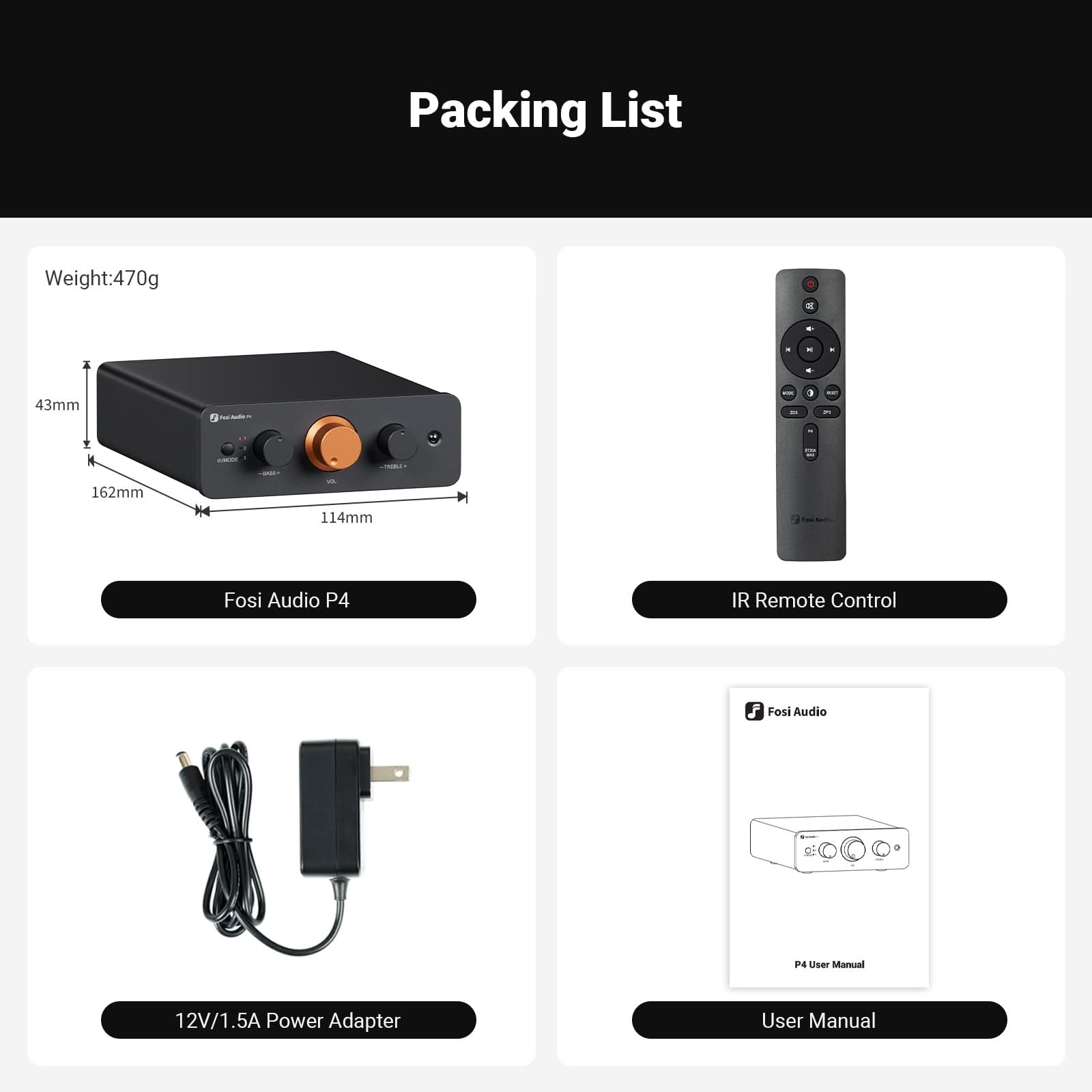 Fosi Audio P4 HiFi Preamplifier: 3 RCA Inputs, EQ/Bypass, Swappable Op-Amps, Treble & Bass Tone Control For Audiophile Systems