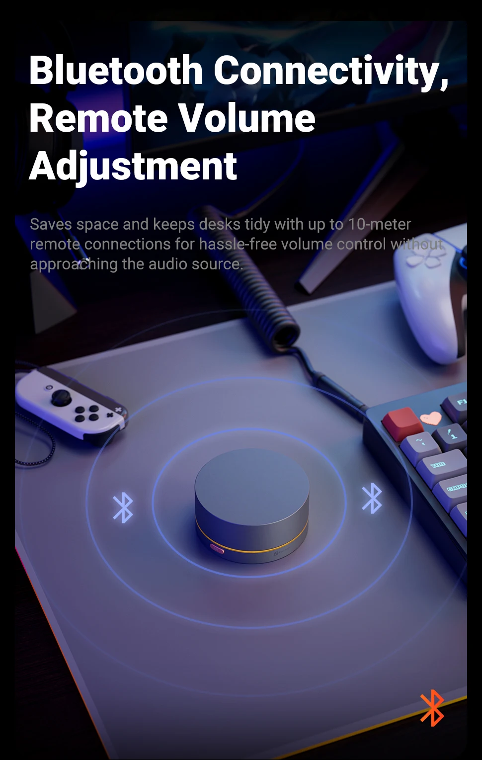 - Multimedia Volume Knob: The VOL20 is a versatile desktop volume controller with Bluetooth wireless and USB-C connectivity, offering real-time volume adjustments. Perfect for music lovers, gamers, and professionals who demand precise volume control