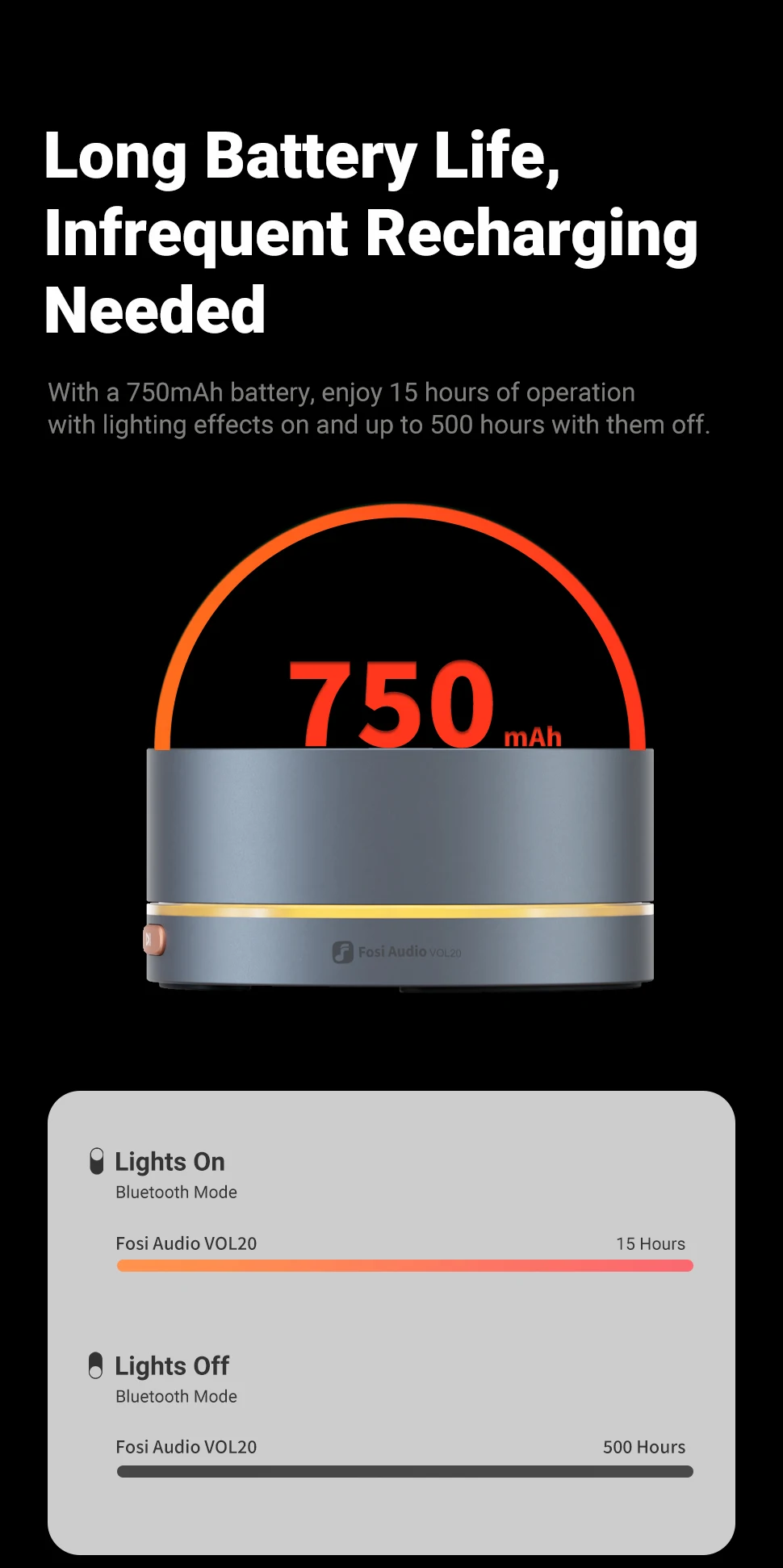 Note: The VOL20 does not support charging with fast-charging adapters and cables, otherwise it may damage the product.